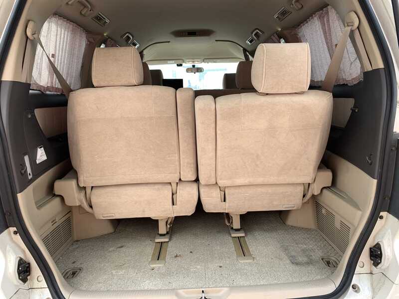 This is a Toyota 8-seat large minivan, seating up to seven (7) or eight (8) people. The interior offers ample room which provides luxurious relaxation. The step into the car is wide and low, which makes it easy to get in and out of the rear seats. The luggage space has ample space, and the seats can be re-arranged so that luggage can be stored.