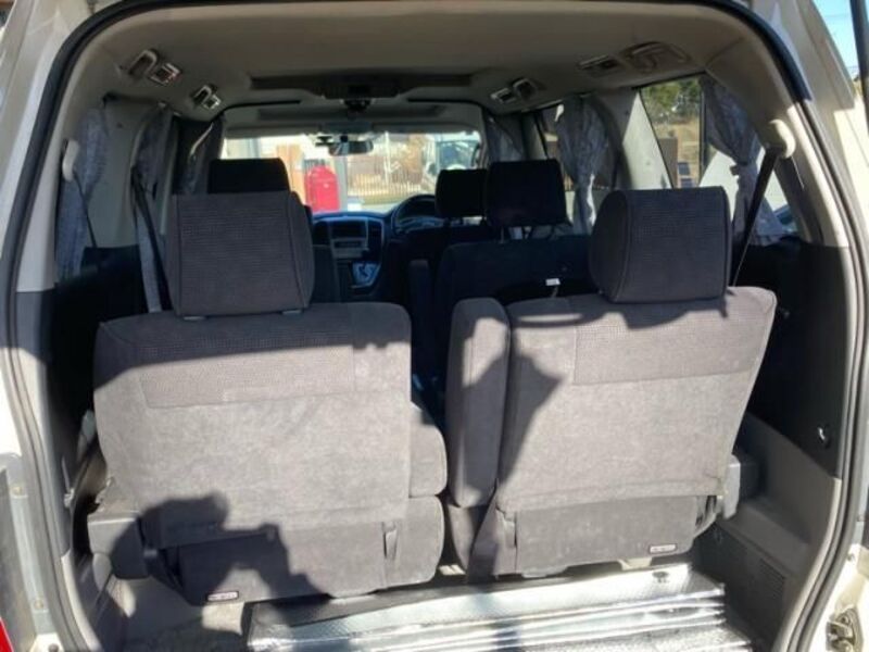 This is a Toyota 8-seat large minivan, seating up to seven (7) or eight (8) people. The interior offers ample room which provides luxurious relaxation. The step into the car is wide and low, which makes it easy to get in and out of the rear seats. The luggage space has ample space, and the seats can be re-arranged so that luggage can be stored.