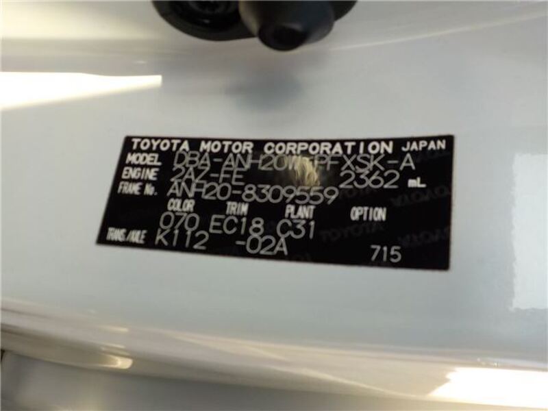 | Chassis No | ANH20-8****Full Chassis No_will be shown on Invoice |