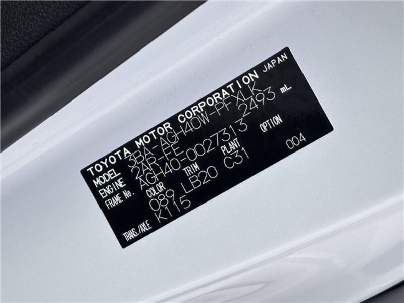 | Chassis No | AGH40-0****Full Chassis No_will be shown on Invoice |