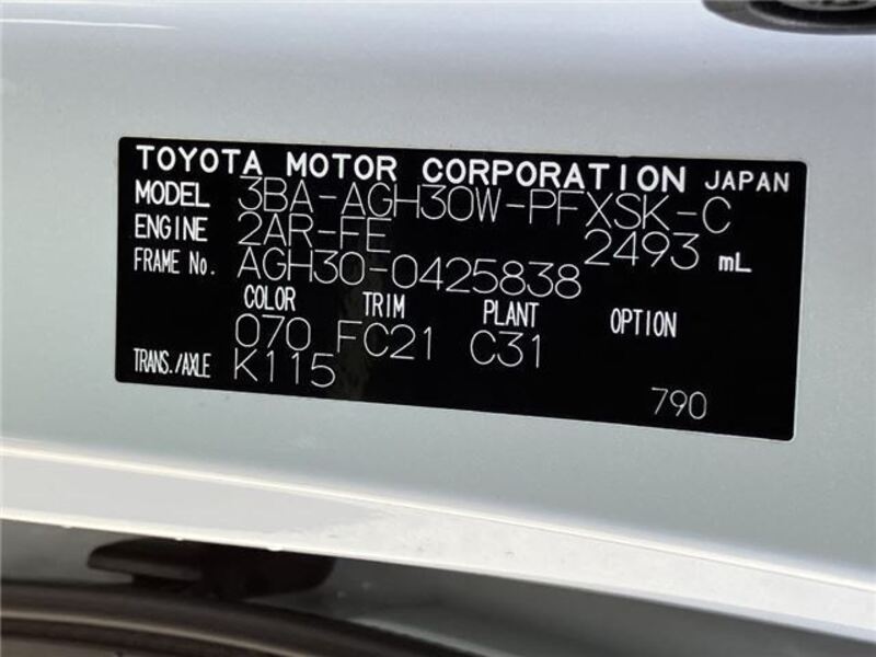 | Chassis No | AGH30-0****Full Chassis No_will be shown on Invoice |