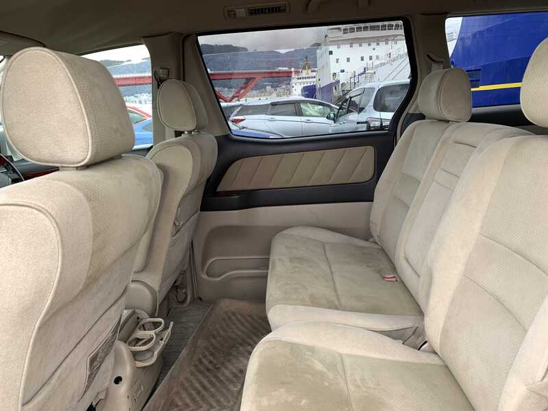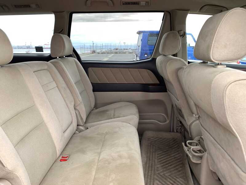 This is a Toyota 8-seat large minivan, seating up to seven (7) or eight (8) people. The interior offers ample room which provides luxurious relaxation. The step into the car is wide and low, which makes it easy to get in and out of the rear seats. The luggage space has ample space, and the seats can be re-arranged so that luggage can be stored.