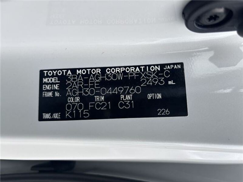 | Chassis No | AGH30-0****Full Chassis No_will be shown on Invoice |