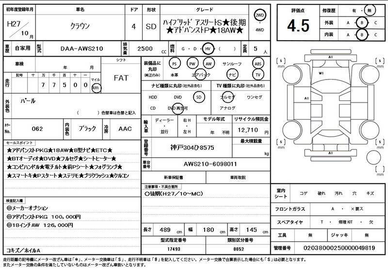 This 2015 TOYOTA CROWN with the model code AWS210 is equipped with a 2,500cc Electric engine and has a total mileage of 78,000km.