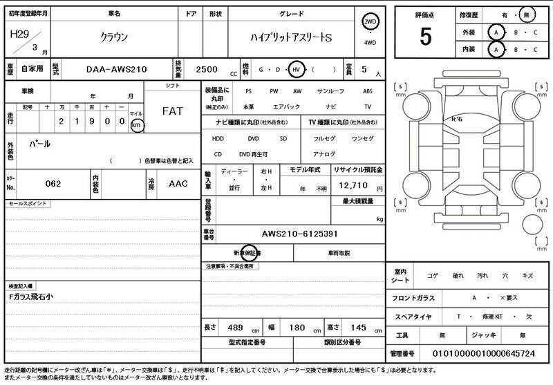 This 2017 TOYOTA CROWN with the model code AWS210 is equipped with a 2,500cc Electric engine and has a total mileage of 22,000km.