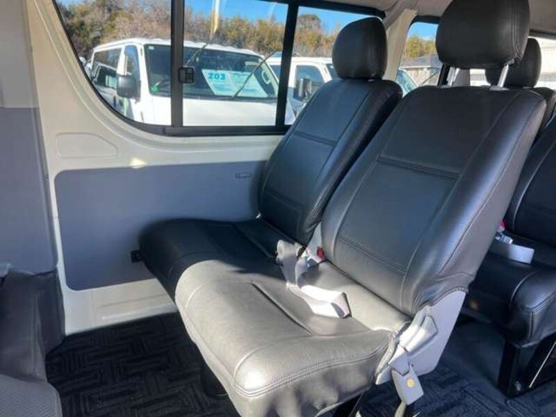 This is a 10-seat Toyota van that is perfect for trips and picking up or dropping off a large number of people. The line of sight has been raised to offer a clear view and provide comfort on long journeys. The interior window areas are also large to provide a sense of openness. The height of the interior makes it easy to get in and out of the vehicle, even to and from the last row of seats. Has a spacious luggage area owing to its seats that can be raised.