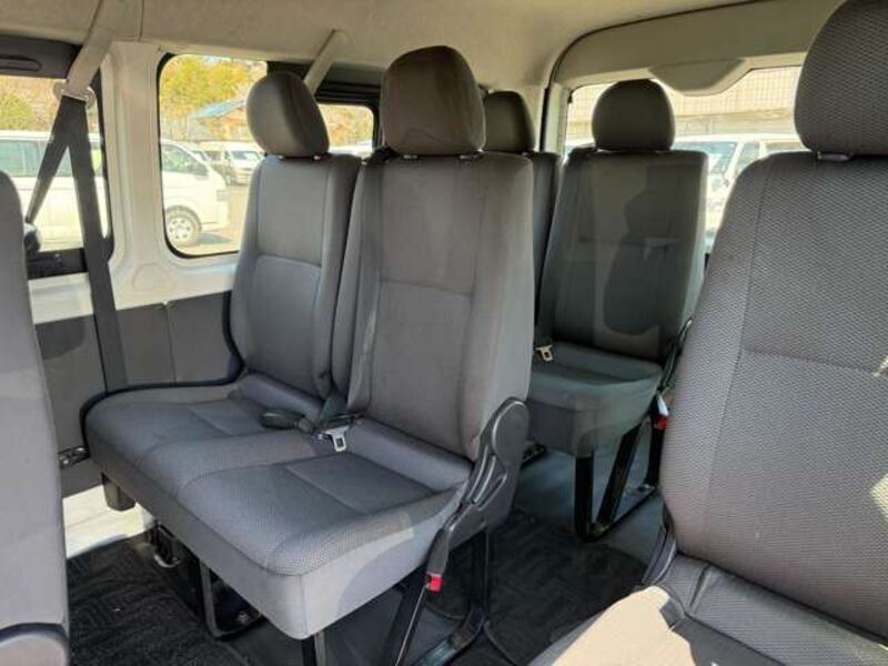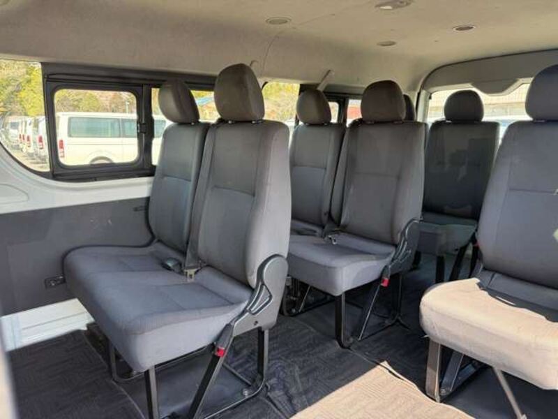 This is a 10-seat Toyota van that is perfect for trips and picking up or dropping off a large number of people. The line of sight has been raised to offer a clear view and provide comfort on long journeys. The interior window areas are also large to provide a sense of openness. The height of the interior makes it easy to get in and out of the vehicle, even to and from the last row of seats. Has a spacious luggage area owing to its seats that can be raised.