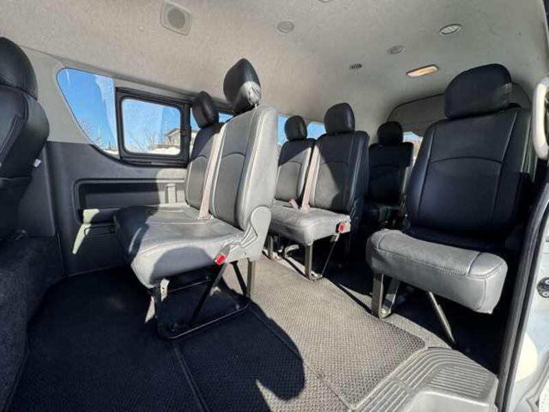 This is a 10-seat Toyota van that is perfect for trips and picking up or dropping off a large number of people. The line of sight has been raised to offer a clear view and provide comfort on long journeys. The interior window areas are also large to provide a sense of openness. The height of the interior makes it easy to get in and out of the vehicle, even to and from the last row of seats. Has a spacious luggage area owing to its seats that can be raised.