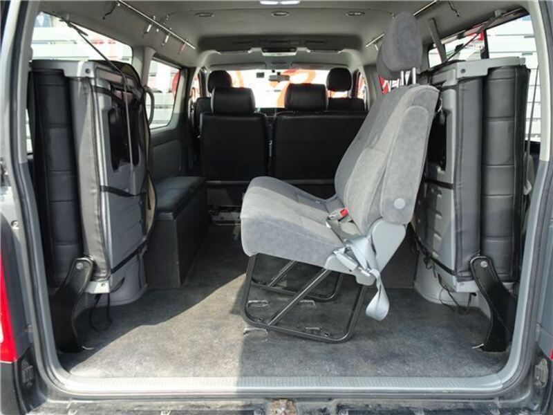 This is a 10-seat Toyota van that is perfect for trips and picking up or dropping off a large number of people. The line of sight has been raised to offer a clear view and provide comfort on long journeys. The interior window areas are also large to provide a sense of openness. The height of the interior makes it easy to get in and out of the vehicle, even to and from the last row of seats. Has a spacious luggage area owing to its seats that can be raised.