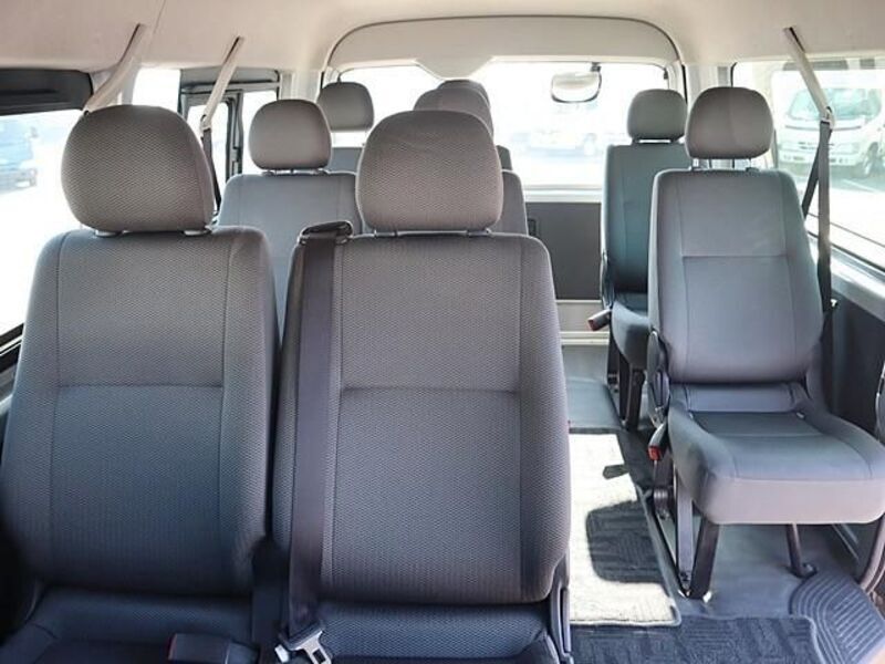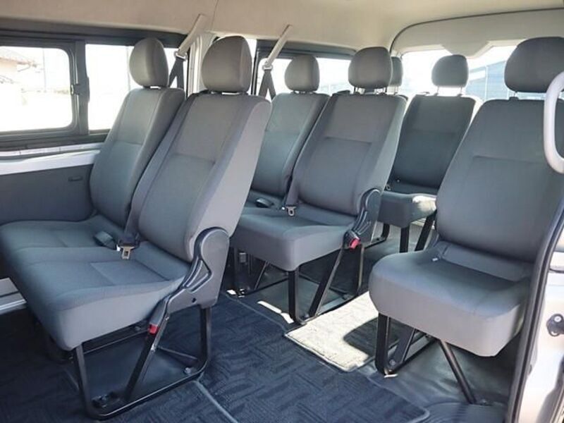 This is a 10-seat Toyota van that is perfect for trips and picking up or dropping off a large number of people. The line of sight has been raised to offer a clear view and provide comfort on long journeys. The interior window areas are also large to provide a sense of openness. The height of the interior makes it easy to get in and out of the vehicle, even to and from the last row of seats. Has a spacious luggage area owing to its seats that can be raised.