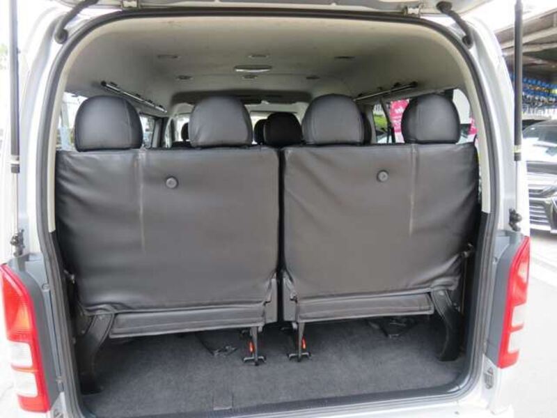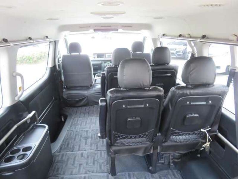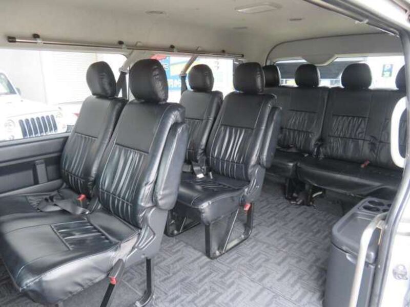 This is a 10-seat Toyota van that is perfect for trips and picking up or dropping off a large number of people. The line of sight has been raised to offer a clear view and provide comfort on long journeys. The interior window areas are also large to provide a sense of openness. The height of the interior makes it easy to get in and out of the vehicle, even to and from the last row of seats. Has a spacious luggage area owing to its seats that can be raised.