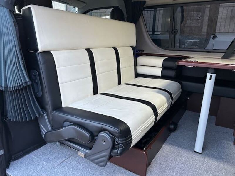 This is a 10-seat Toyota van that is perfect for trips and picking up or dropping off a large number of people. The line of sight has been raised to offer a clear view and provide comfort on long journeys. The interior window areas are also large to provide a sense of openness. The height of the interior makes it easy to get in and out of the vehicle, even to and from the last row of seats. Has a spacious luggage area owing to its seats that can be raised.