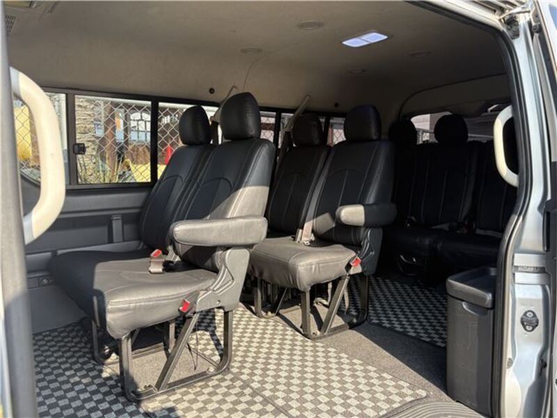 This is a 10-seat Toyota van that is perfect for trips and picking up or dropping off a large number of people. The line of sight has been raised to offer a clear view and provide comfort on long journeys. The interior window areas are also large to provide a sense of openness. The height of the interior makes it easy to get in and out of the vehicle, even to and from the last row of seats. Has a spacious luggage area owing to its seats that can be raised.