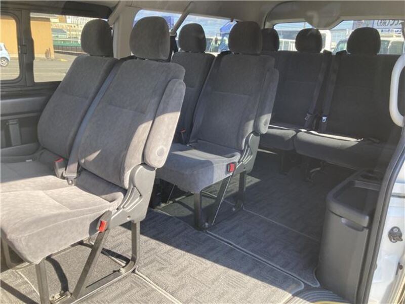 This is a 10-seat Toyota van that is perfect for trips and picking up or dropping off a large number of people. The line of sight has been raised to offer a clear view and provide comfort on long journeys. The interior window areas are also large to provide a sense of openness. The height of the interior makes it easy to get in and out of the vehicle, even to and from the last row of seats. Has a spacious luggage area owing to its seats that can be raised.