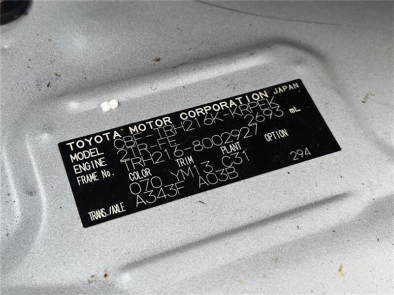 | Chassis No | TRH216K****Full Chassis No_will be shown on Invoice |