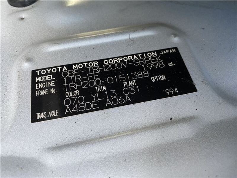 | Chassis No | TRH200-****Full Chassis No_will be shown on Invoice |