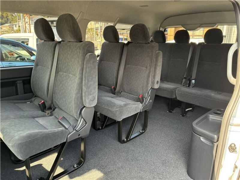 This is a 10-seat Toyota van that is perfect for trips and picking up or dropping off a large number of people. The line of sight has been raised to offer a clear view and provide comfort on long journeys. The interior window areas are also large to provide a sense of openness. The height of the interior makes it easy to get in and out of the vehicle, even to and from the last row of seats. Has a spacious luggage area owing to its seats that can be raised.