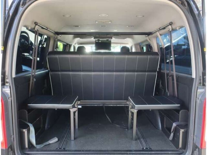 This is a 10-seat Toyota van that is perfect for trips and picking up or dropping off a large number of people. The line of sight has been raised to offer a clear view and provide comfort on long journeys. The interior window areas are also large to provide a sense of openness. The height of the interior makes it easy to get in and out of the vehicle, even to and from the last row of seats. Has a spacious luggage area owing to its seats that can be raised.