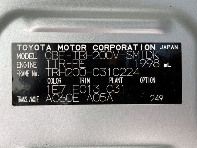 | Chassis No | TRH200-****Full Chassis No_will be shown on Invoice |