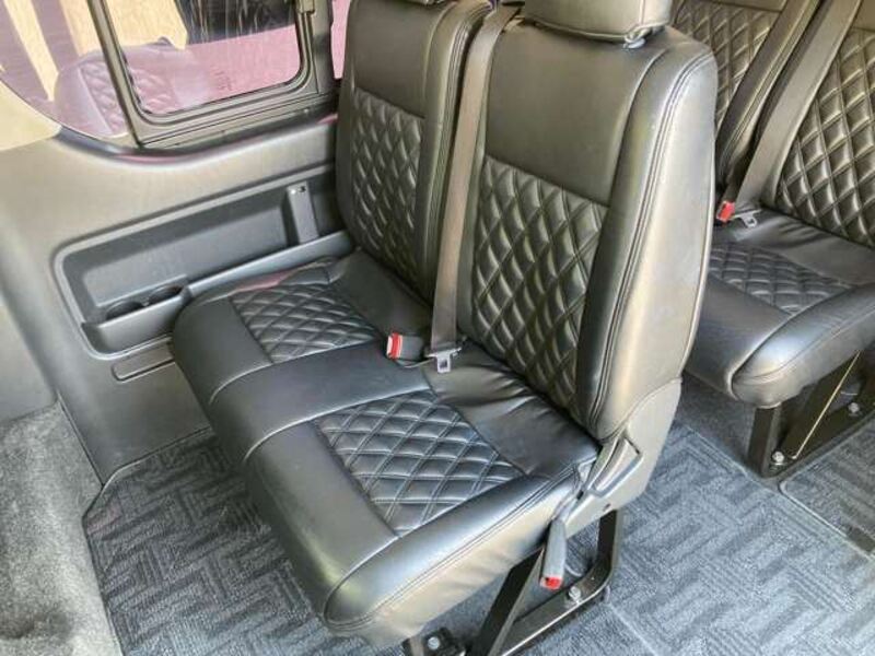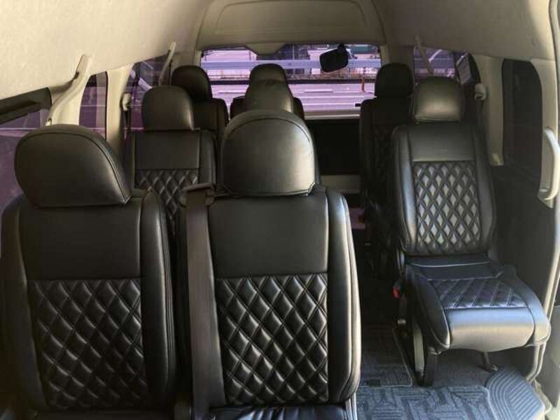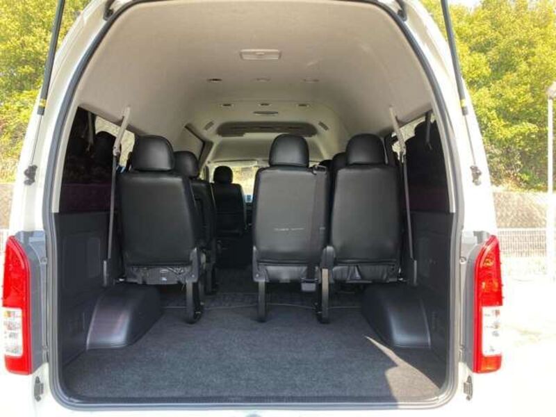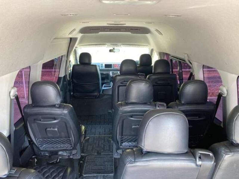 This is a 10-seat Toyota van that is perfect for trips and picking up or dropping off a large number of people. The line of sight has been raised to offer a clear view and provide comfort on long journeys. The interior window areas are also large to provide a sense of openness. The height of the interior makes it easy to get in and out of the vehicle, even to and from the last row of seats. Has a spacious luggage area owing to its seats that can be raised.