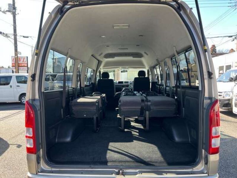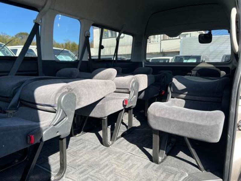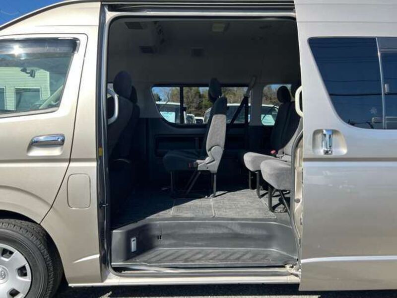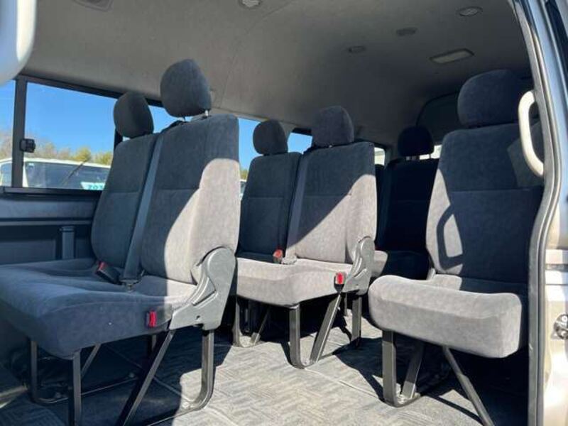 This is a 10-seat Toyota van that is perfect for trips and picking up or dropping off a large number of people. The line of sight has been raised to offer a clear view and provide comfort on long journeys. The interior window areas are also large to provide a sense of openness. The height of the interior makes it easy to get in and out of the vehicle, even to and from the last row of seats. Has a spacious luggage area owing to its seats that can be raised.