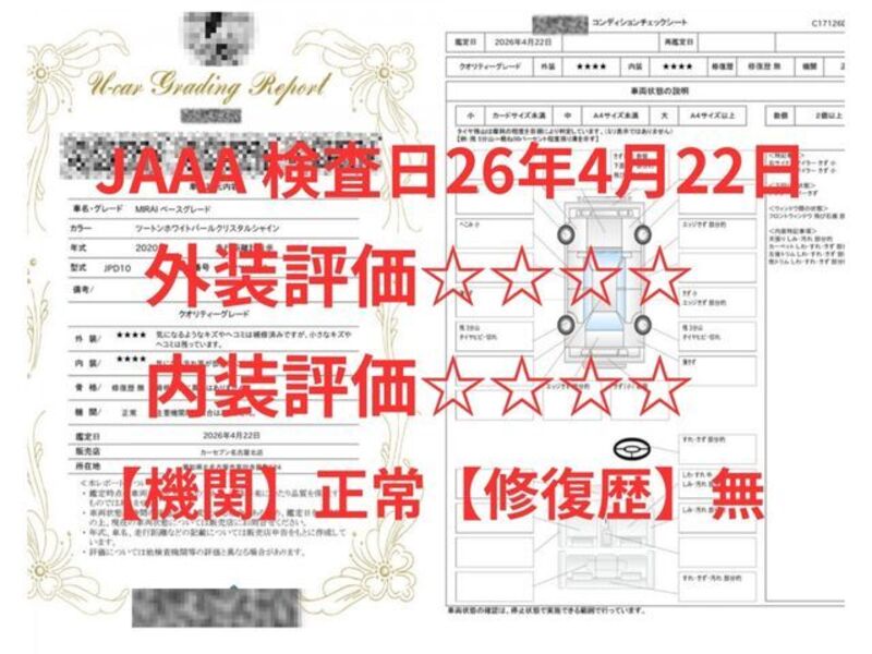 This 2020 TOYOTA MIRAI with the model code JPD10 and has a total mileage of 34,551km.