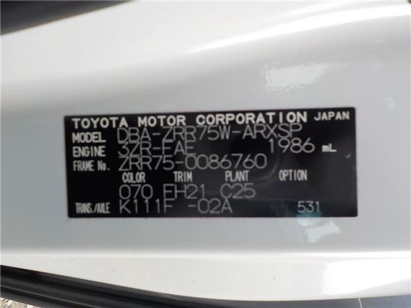 | Chassis No | ZRR75-0****Full Chassis No_will be shown on Invoice |