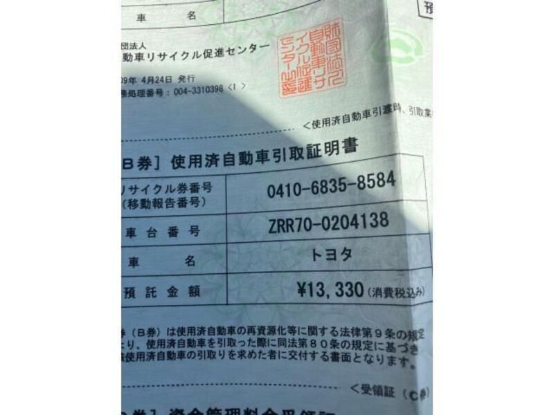 | Chassis No | ZRR70-0****Full Chassis No_will be shown on Invoice |