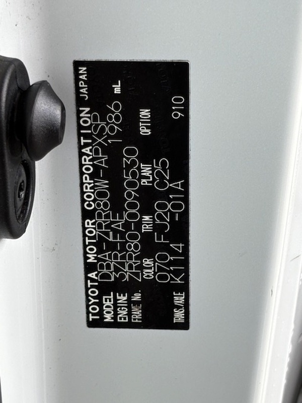 | Chassis No | ZRR80-0****Full Chassis No_will be shown on Invoice |