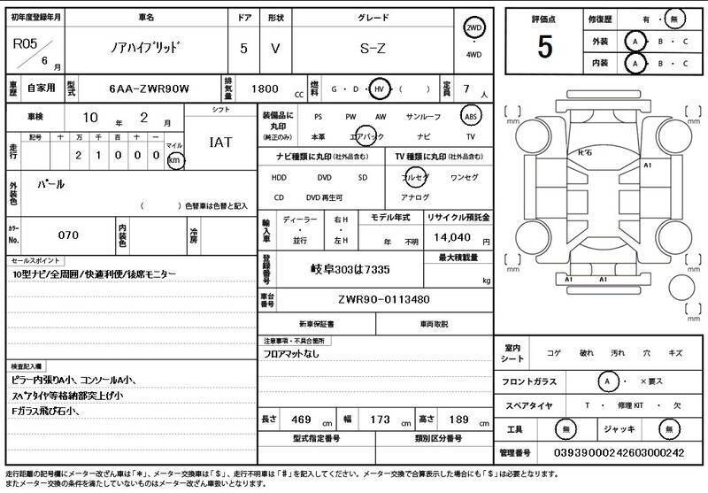 This 2023 TOYOTA NOAH with the model code ZWR90W is equipped with a 1,800cc Electric engine and has a total mileage of 21,000km.