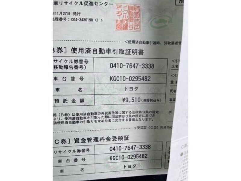 | Chassis No | KGC10-0****Full Chassis No_will be shown on Invoice |