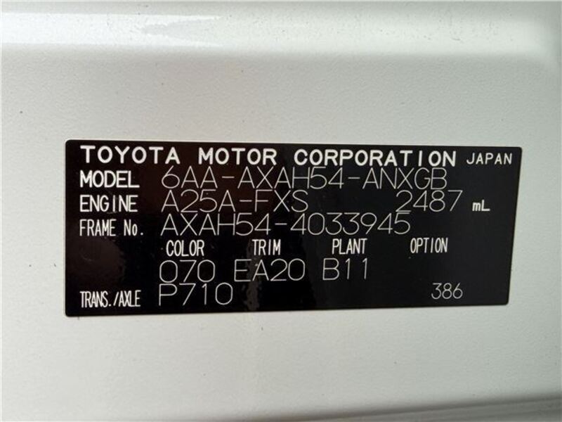 | Chassis No | AXAH54-****Full Chassis No_will be shown on Invoice |