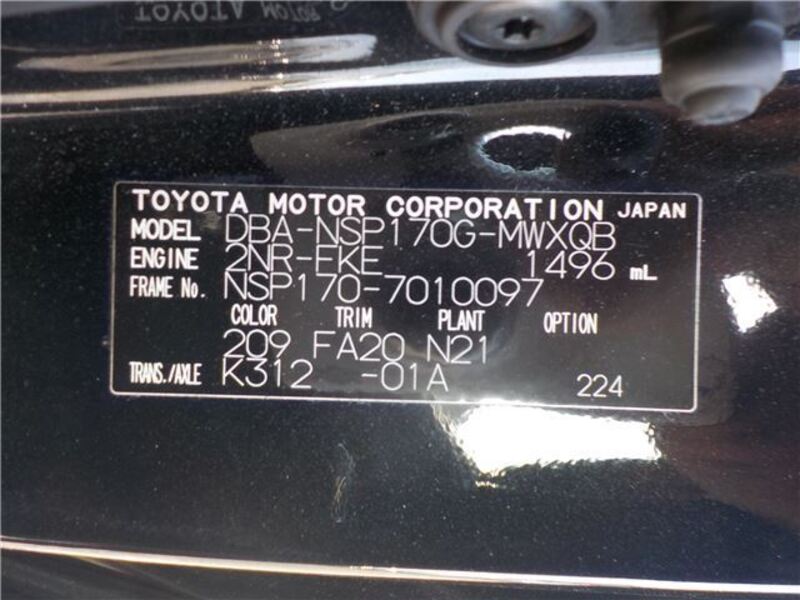 | Chassis No | NSP170-****Full Chassis No_will be shown on Invoice |