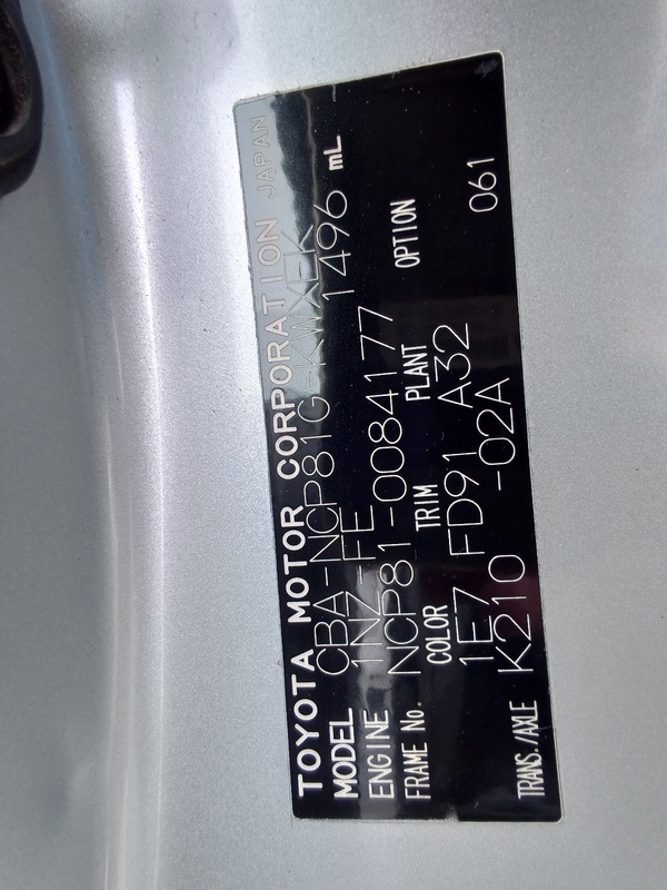 | Chassis No | NCP81-0****Full Chassis No_will be shown on Invoice |