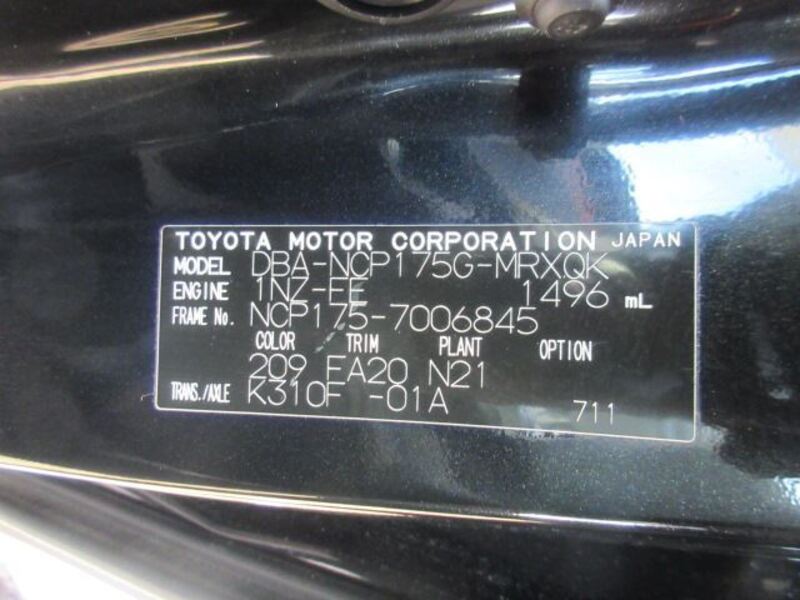 | Chassis No | NCP175-****Full Chassis No_will be shown on Invoice |