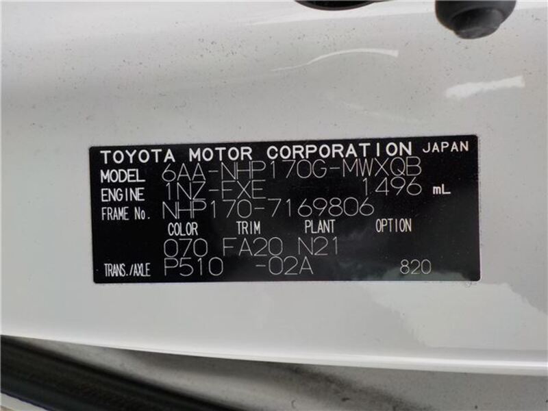 | Chassis No | NHP170-****Full Chassis No_will be shown on Invoice |