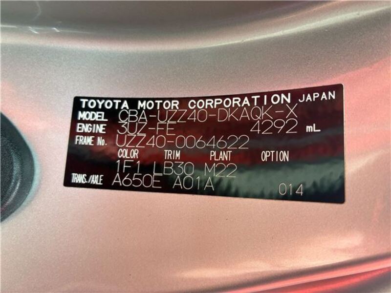 | Chassis No | UZZ40-0****Full Chassis No_will be shown on Invoice |