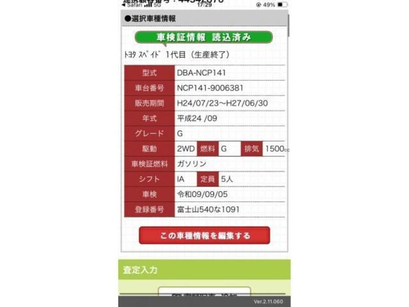 This 2012 TOYOTA SPADE with the model code NCP141 is equipped with a 1,500cc Gasoline engine and has a total mileage of 171,121km.