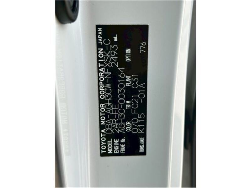 | Chassis No | AGH30-0****Full Chassis No_will be shown on Invoice |