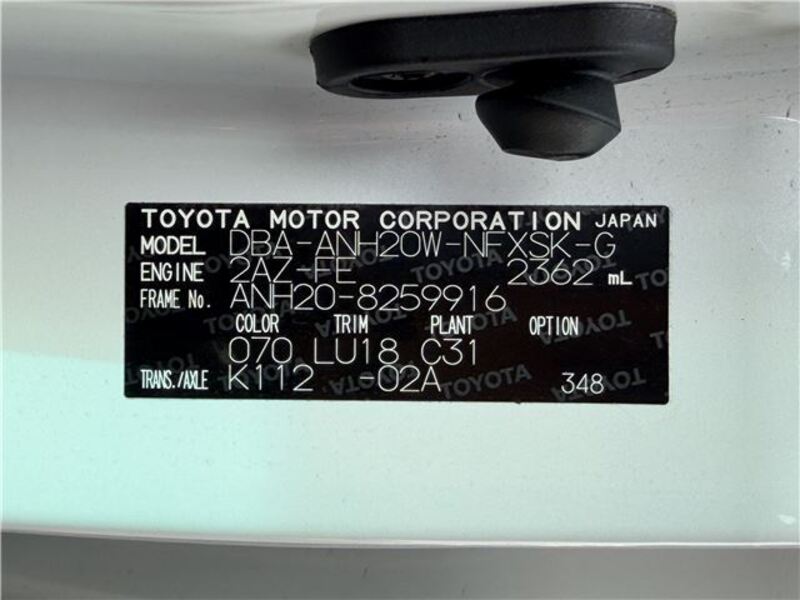 | Chassis No | ANH20-8****Full Chassis No_will be shown on Invoice |