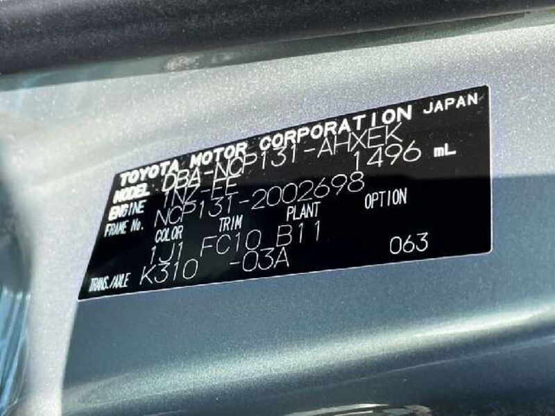 | Chassis No | NCP131-****Full Chassis No_will be shown on Invoice |