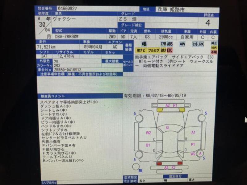 2018 AT TOYOTA VOXY DBA-ZRR80W