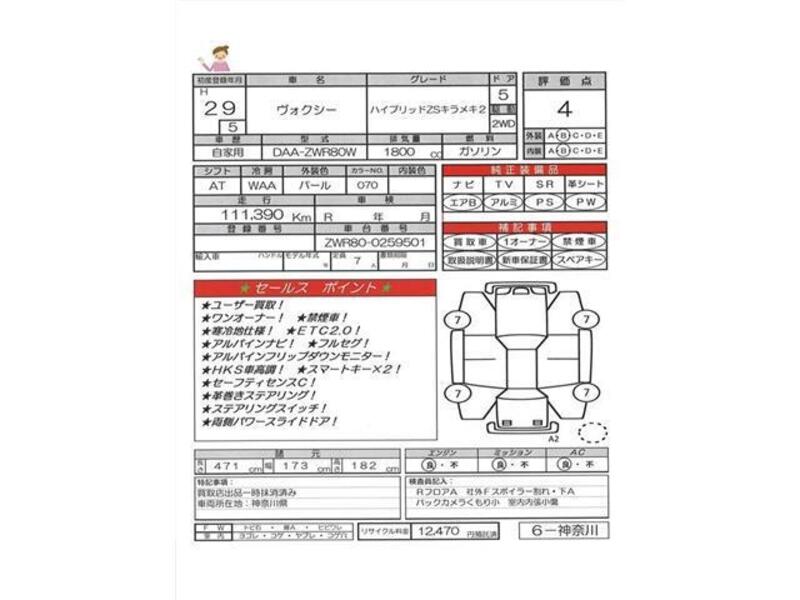 This TOYOTA VOXY with the model code ZWR80W is equipped with a 1,800cc Gasoline engine and has a total mileage of 111,390km.