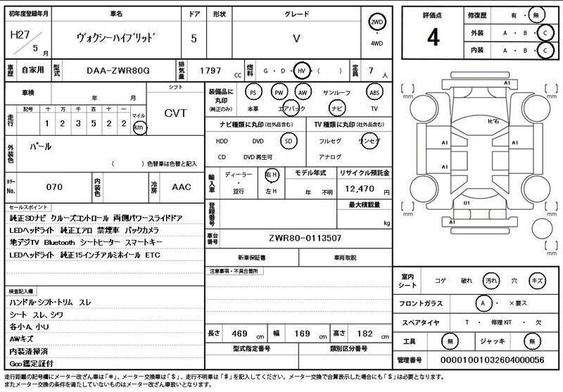 This 2015 TOYOTA VOXY with the model code ZWR80G is equipped with a 1,797cc Electric engine and has a total mileage of 124,000km.