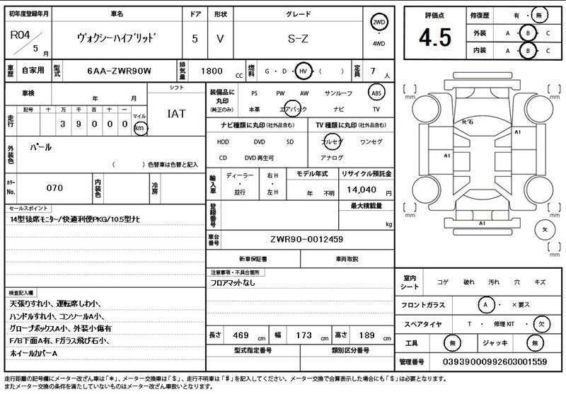 This 2022 TOYOTA VOXY with the model code ZWR90W is equipped with a 1,800cc Electric engine and has a total mileage of 39,000km.