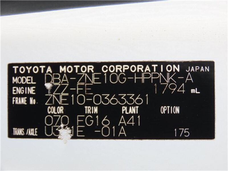 | Chassis No | ZNE10-0****Full Chassis No_will be shown on Invoice |