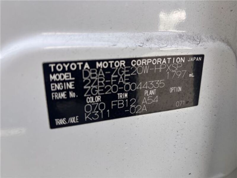 | Chassis No | ZGE20-0****Full Chassis No_will be shown on Invoice |