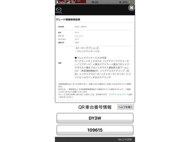 | Body Type | Hatchback | Chassis No | DY3W-14**** | Model Code | DY3W | Engine model | -- | Steering | Right |