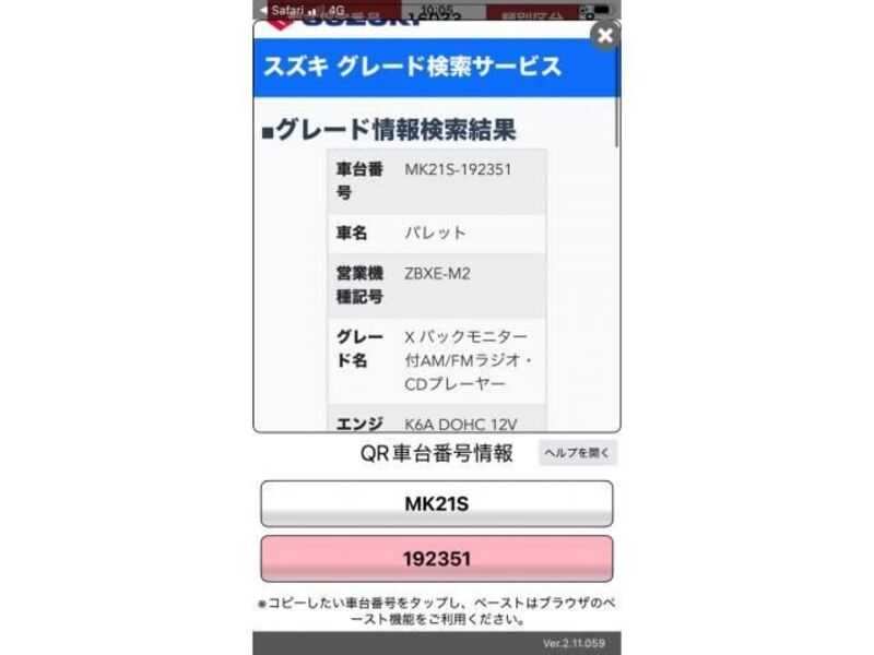 | Body Type | -- | Chassis No | MK21S-2**** | Model Code | MK21S | Engine model | -- | Steering | -- |
