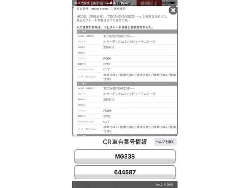 | Body Type | Van | Chassis No | MG33S-2**** | Model Code | MG33S | Engine model | -- | Steering | Right |